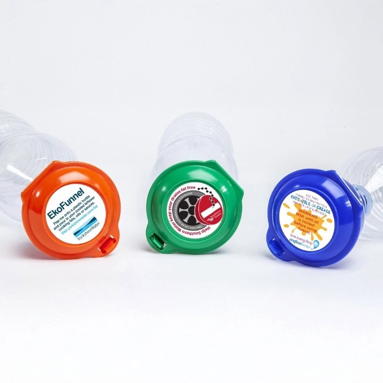 ImbutOlio si avvita a una bottiglia PET standard e ha un coperchio progettato con una cavità interna per contenere in modo sicuro il tappo della bottiglia. Questo coperchio crea una chiusura ermetica che impedisce perdite e cattivi odori. La bottiglia con l’imbuto può essere facilmente riposta, ad esempio, sotto il lavello.